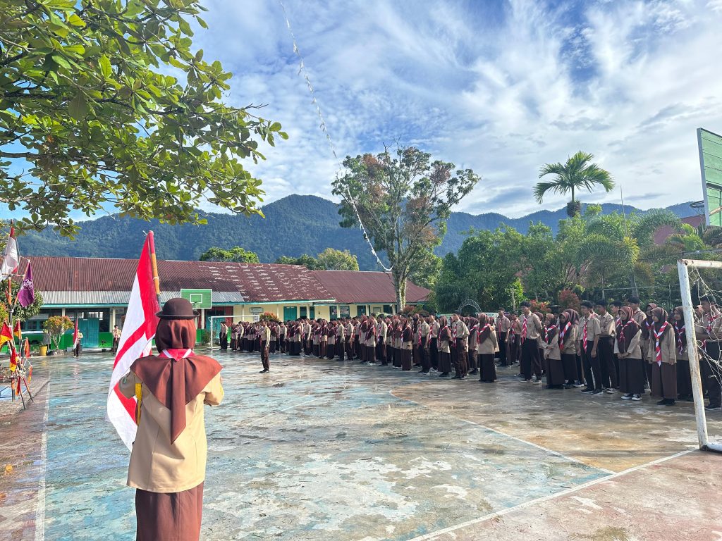 Moment penuh khidmat itu, dilaksanakan dalam sebuah upacara. Bertindak sebagai pembina upacara, Ilham Mizoni, selaku Kamabigus sekaligus kepala MAN 4 Agam.